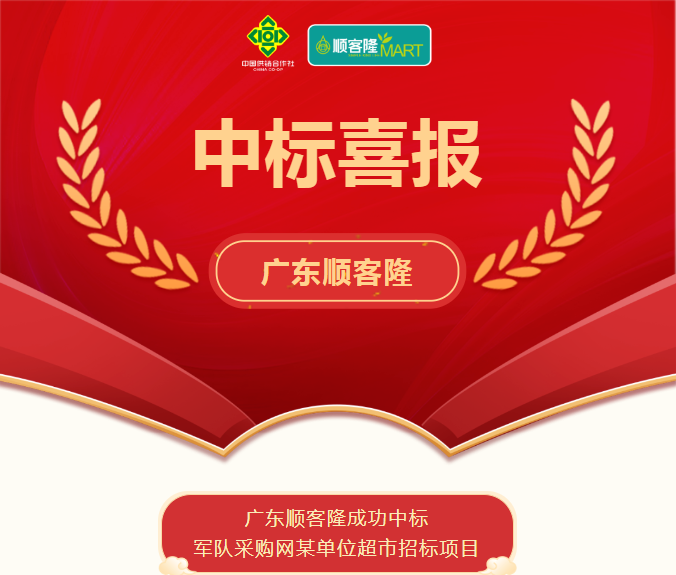 • 【喜訊】廣東順客隆成功中標軍隊采購網某單位超市招標項目 2025-04-28
